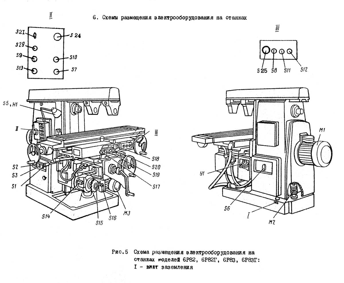 Cхема розположення електроустаткування на фрезерных верстатах 6Р82, 6Р82Г, 6Р83, 6Р83Г