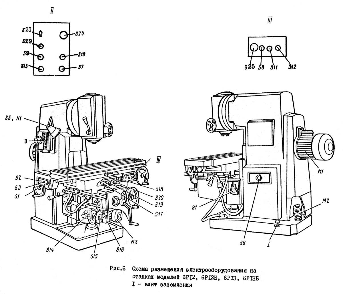 Cхема розположення електроустаткування на фрезерных верстатах 6Р12, 6Р12Б, 6Р13, 6Р13Б