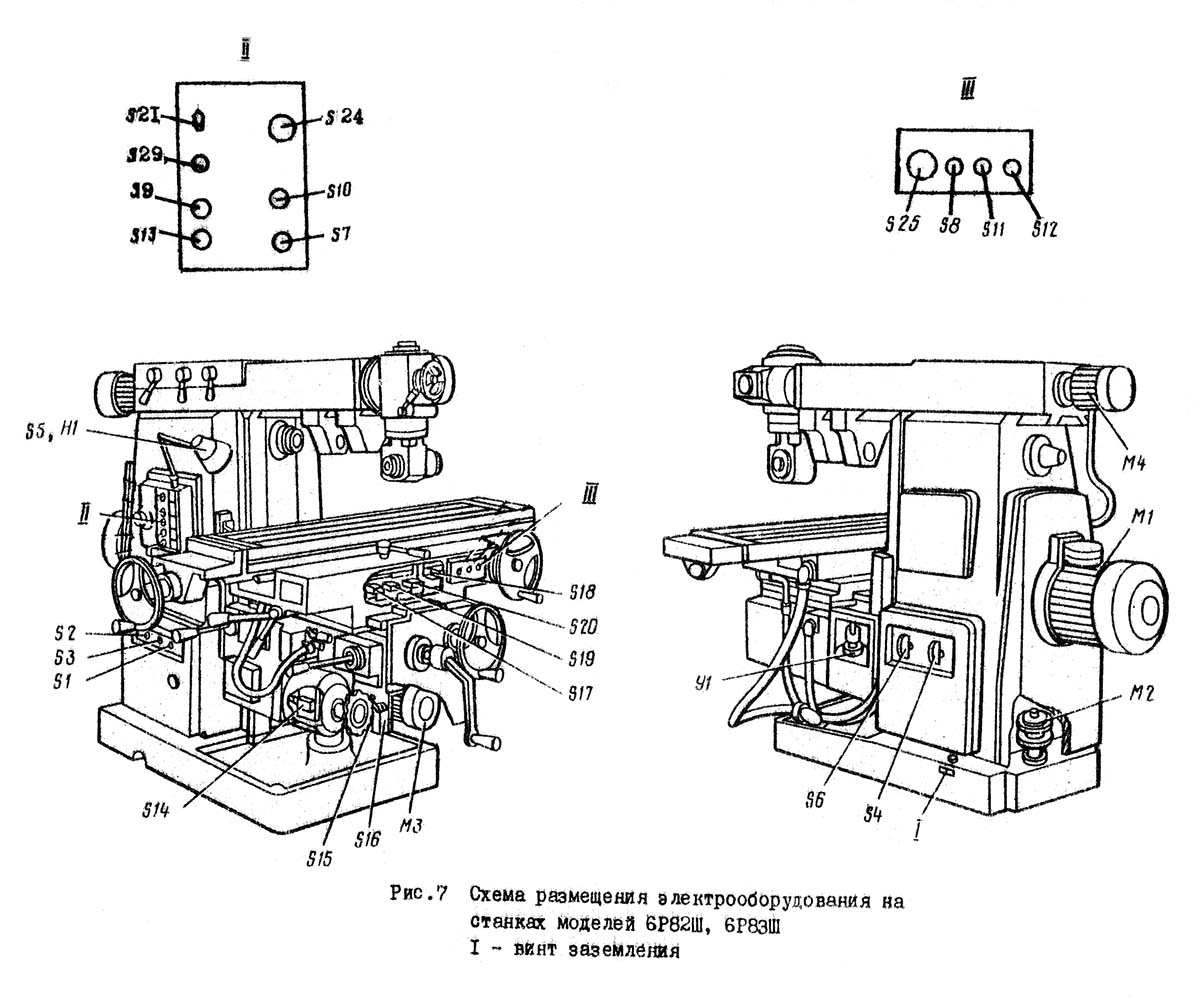 Cхема розположення електроустаткування на фрезерных верстатах 6Р82Ш, 6Р83Ш