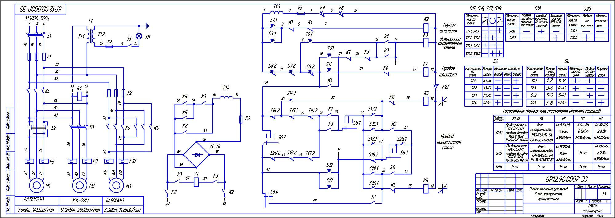 Електрична схема консольно-фрезерных верстатів серии 6Р