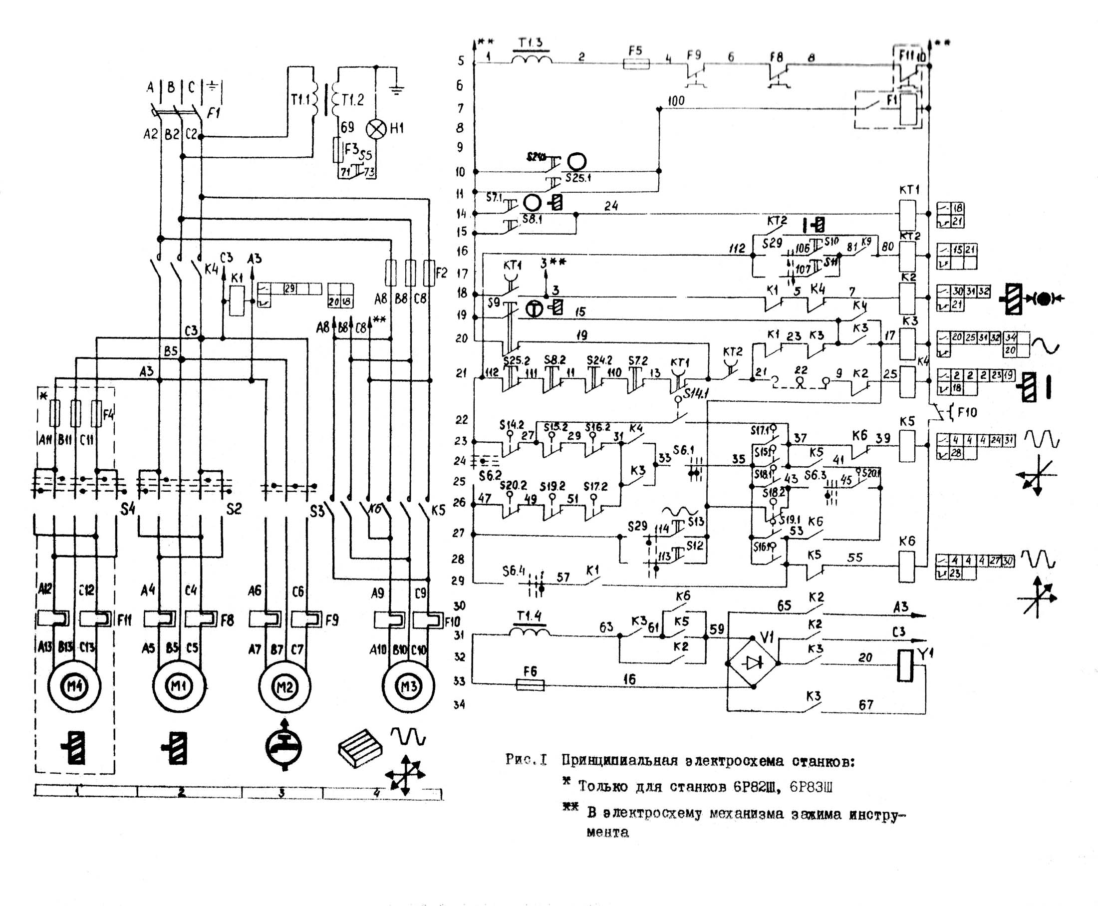 2. Схема електрична принципова фрезерных верстатів 6Р. Скачать в увеличенном масштабе