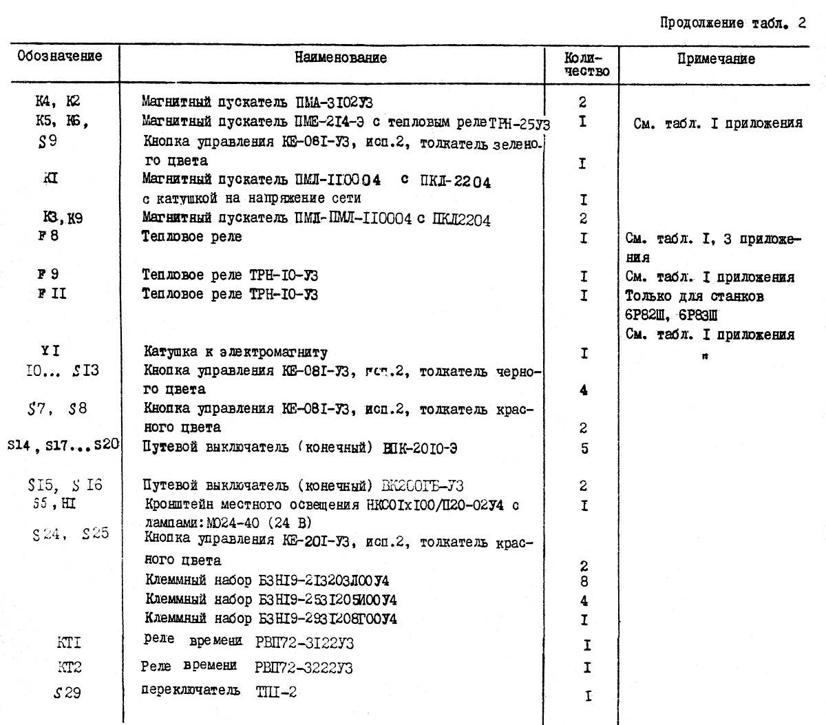 Список елементів електроустаткування консольно-фрезерных верстатів. Скачать в увеличенном масштабе