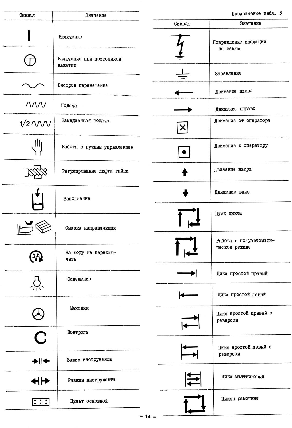 Список графических символів на консольно-фрезерном станке. Скачать в увеличенном масштабе