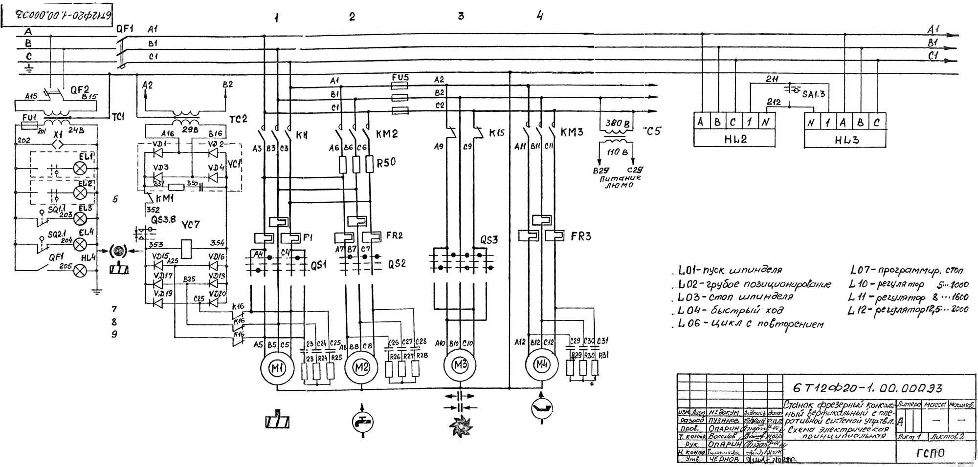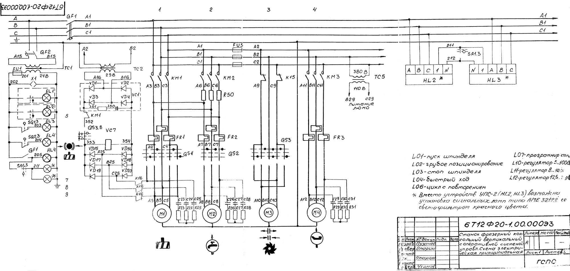 Cхема електрична фрезерного верстата 6Т13Ф20