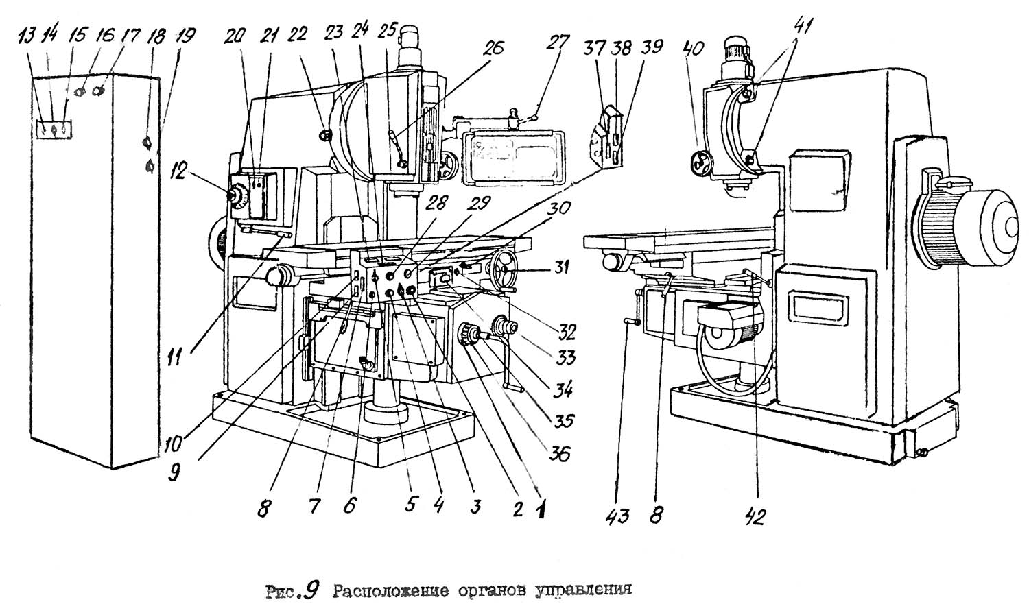 Розташування органів керування фрезерным верстатом 6т13ф20