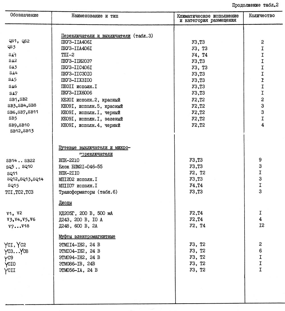 Электрической схемой верстатів предусмотрены пониженные напряжения: 110(220) В переменного тока для ланцюгів керування, 24 В переменного тока для ланцюги освещения і 24 В постоянного тока ланцюги живлення електромагнітних муфт. Технічні данные понижающих трансформаторов приведены в табл.6.