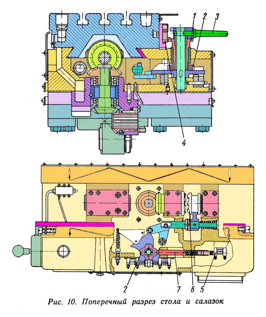 Станина 1 (рис. 5) представляет собой жесткую отливку з направляющими прямоугольного профиля, по которым вертикально перемещается консоль 6, несущая стол-салазки 7.