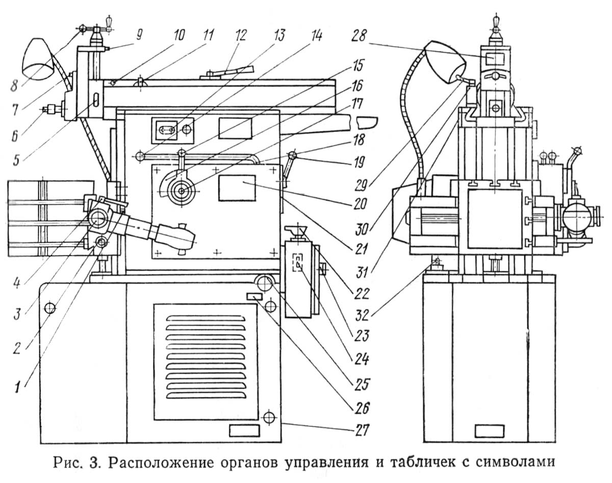 Розташування органів керування строгальным верстатом 7303. Дивитись у збільшеному масштабі