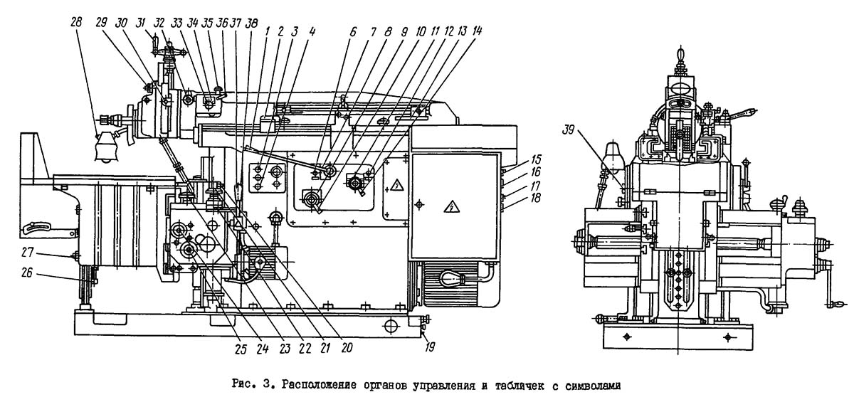 Розташування органів керування поперечно-строгальным верстатом 7307Д. Дивитись у збільшеному масштабі