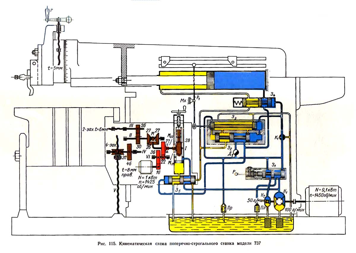1. Схема кінематична строгального верстата 737. Дивитись у збільшеному масштабі
