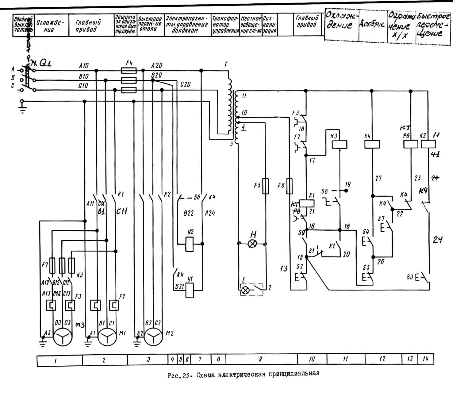 Схема електрична долбежного верстата 7405. Дивитись у збільшеному масштабі