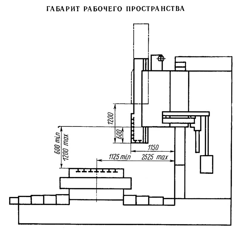 Габаритные розміри робочого простору долбежного верстата 7410. Дивитись у збільшеному масштабі