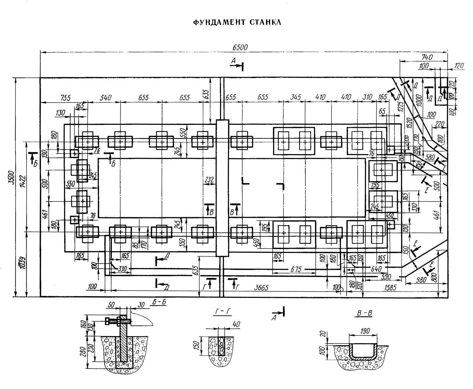 Креслення фундамета долбежного верстата 7410. Дивитись у збільшеному масштабі
