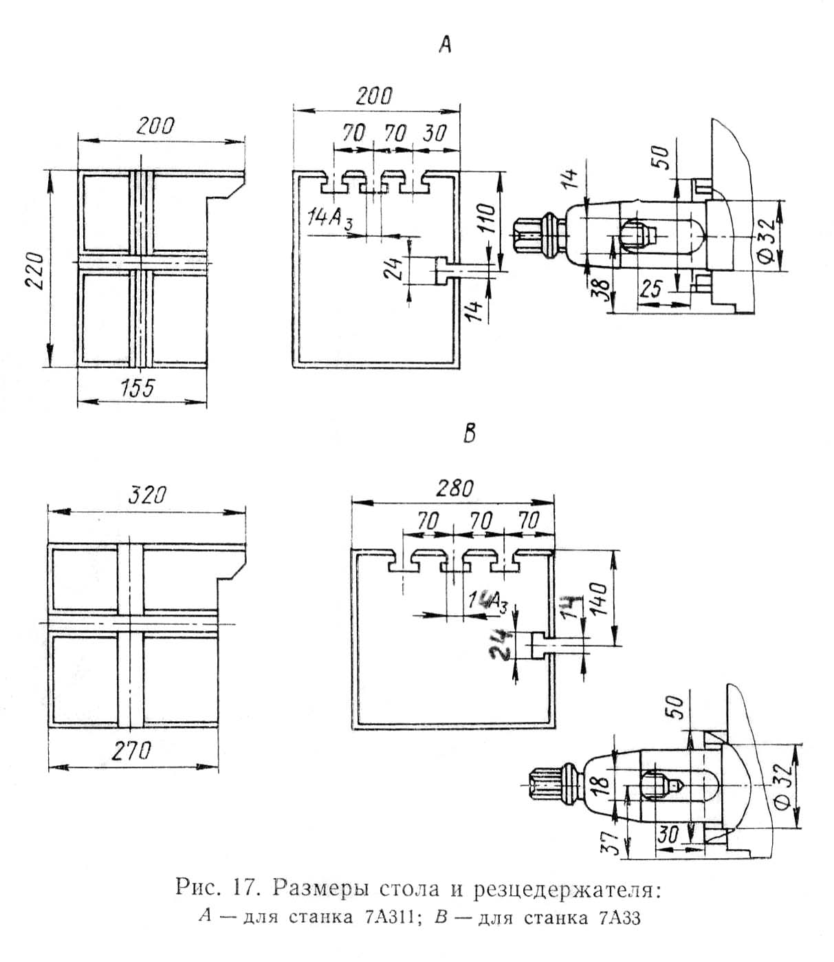 Габарит робочого простору верстата 7А33