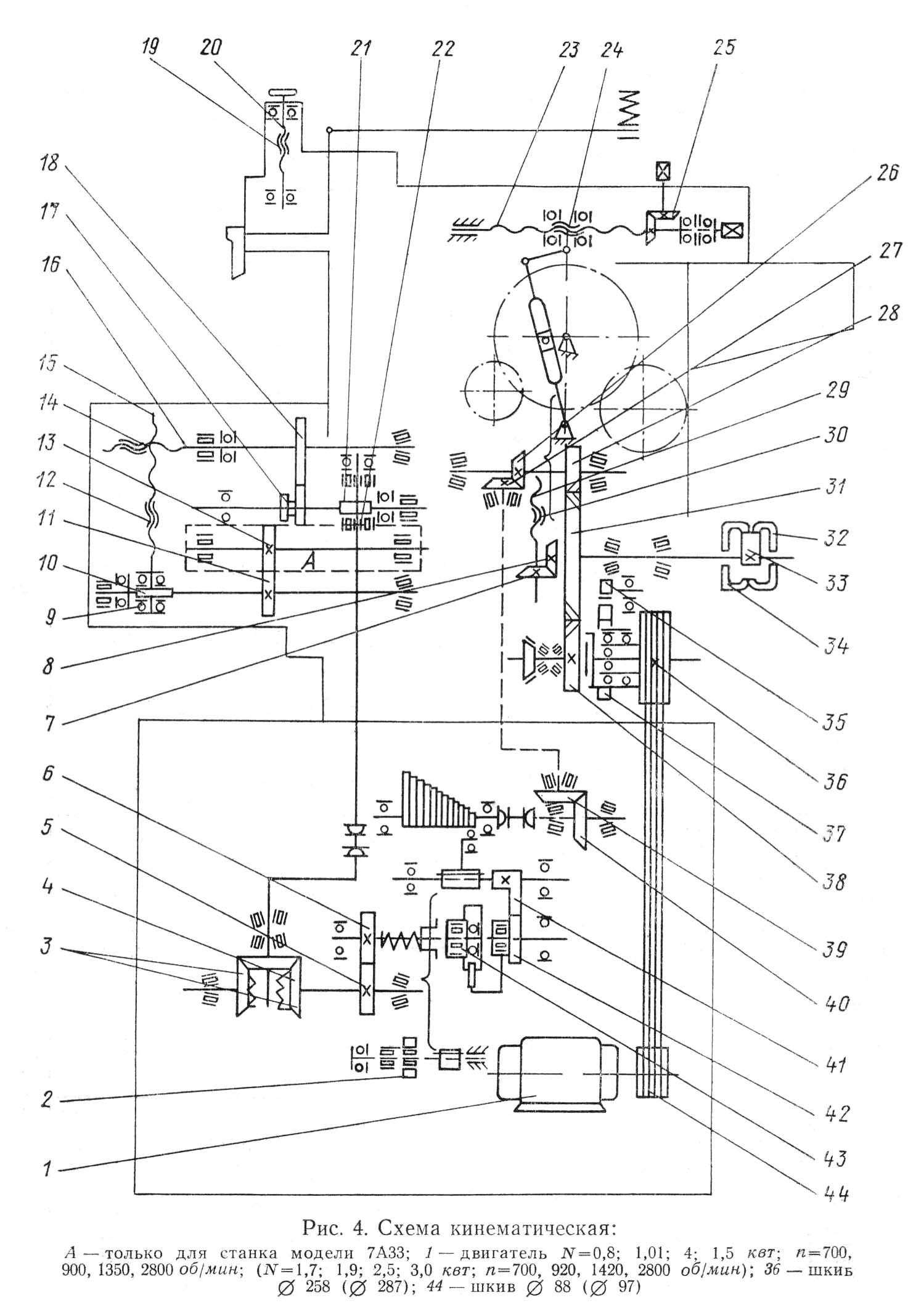 Схема кінематична строгального верстата 7А33. Дивитись у збільшеному масштабі