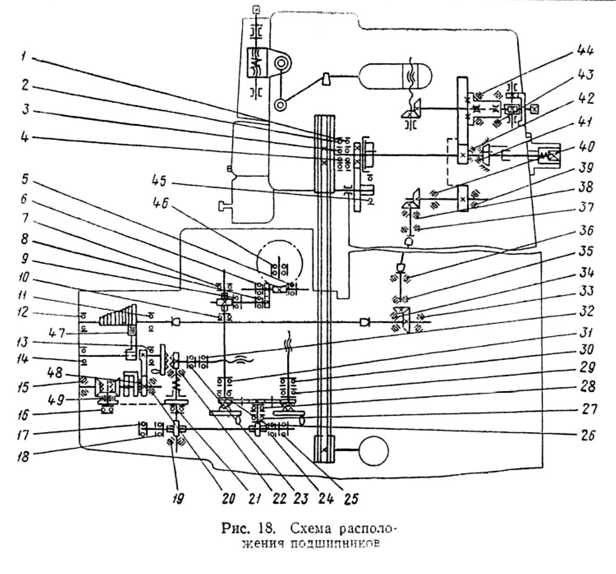 Розташування підшибників долбежного верстата 7А412. Дивитись у збільшеному масштабі
