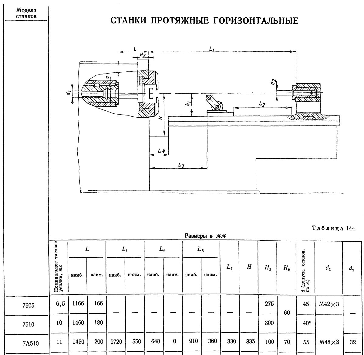 Основні технические характеристики горизонтального протяжного верстата 7А510