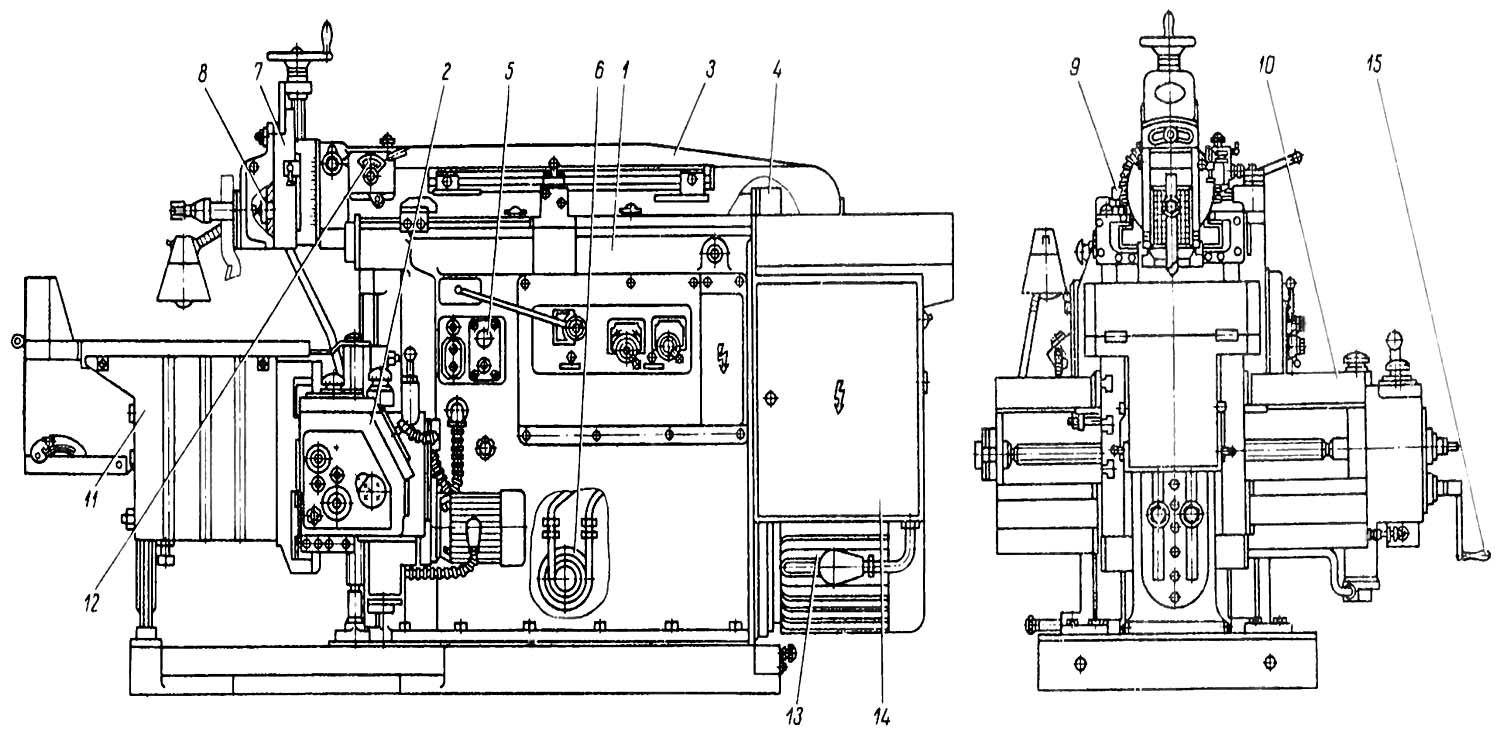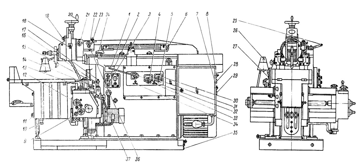 7Д37 Розташування складових частин поперечно-строгального верстата 7Д37