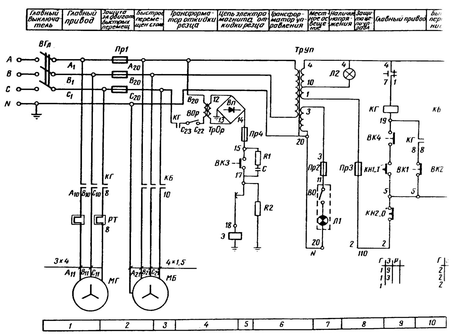 Захист електродвигателей головного приводу в швидкого переміщення, ланцюги живлення форматоров от коротких замыканий осуществляется автоматическим выключателем АК63-ЗМГ і предохранителями Пр1, Пр2, ПрЗ, Пр4.