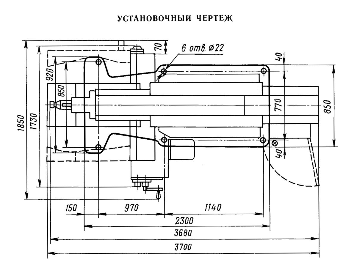 Габарит робочого простору. Посадочные і присоединительные базы поперечно-строгального верстата 7Д37