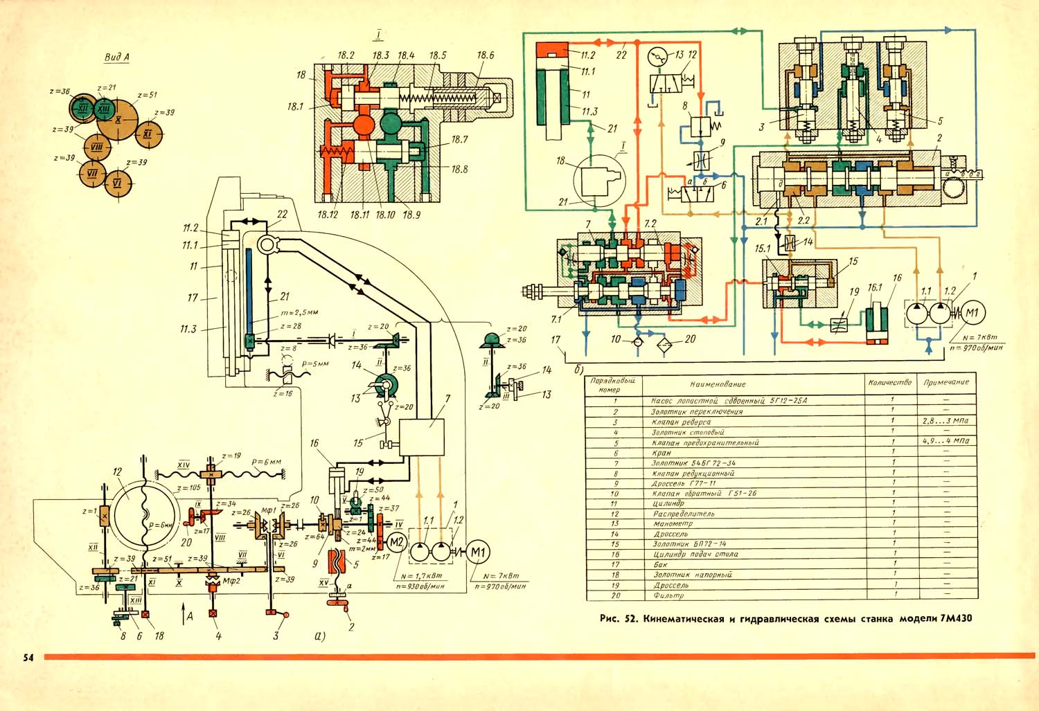 7М430 Гідравлічна схема долбежного верстата