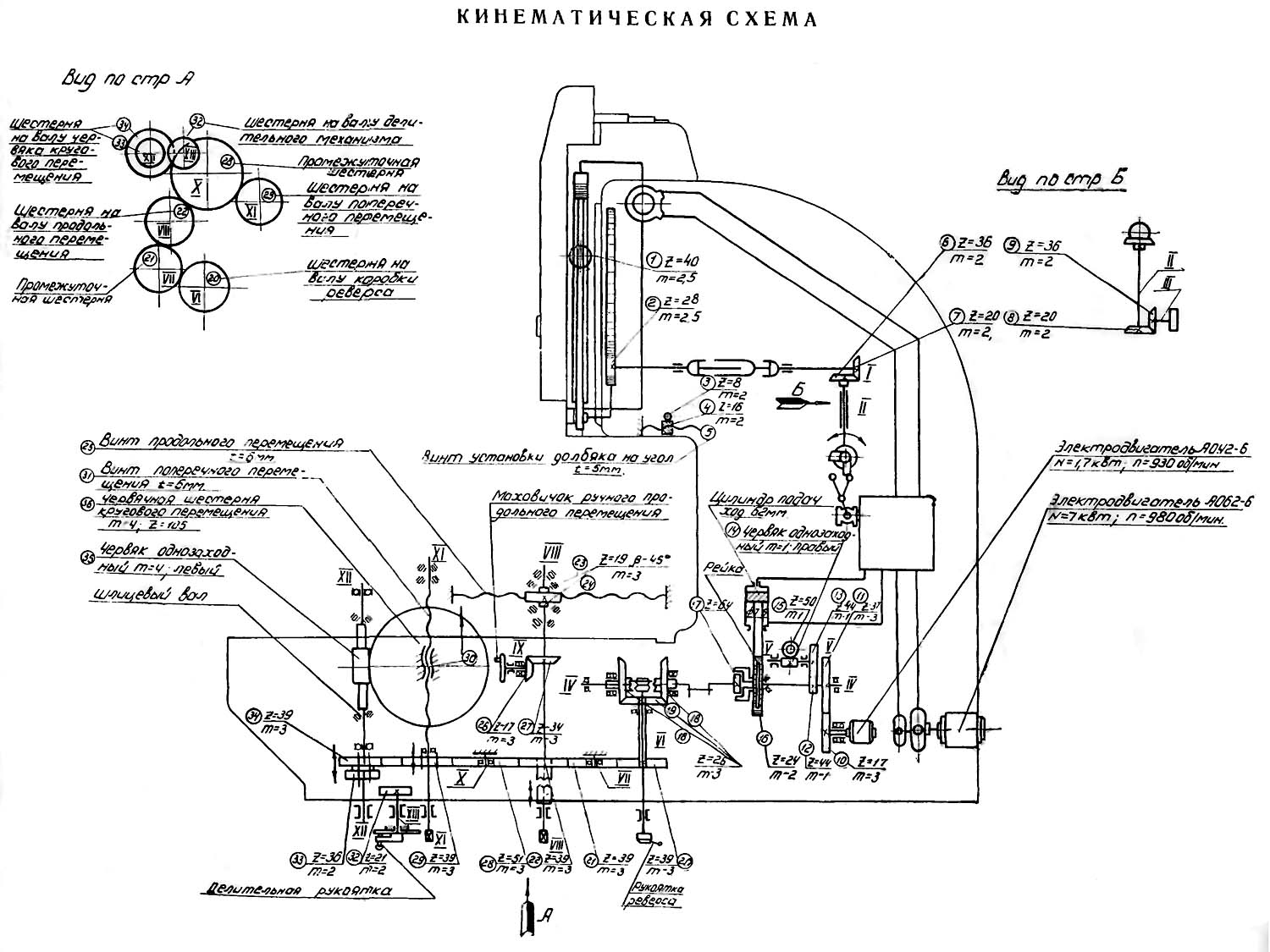 2. Схема кінематична долбежного верстата 7М430. Дивитись у збільшеному масштабі
