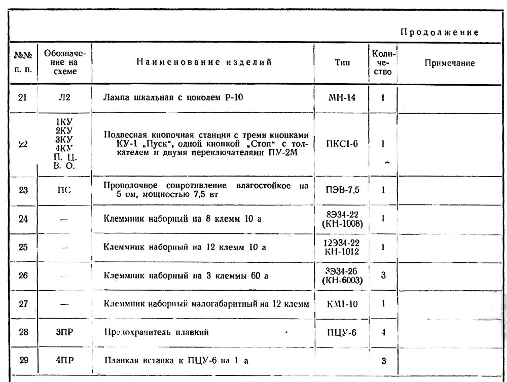 6. Ограничение холостого ходу головного електродвигуна осуществляется кнопкой «2КУ», которая имеет (Н. 3.) контакты в ланцюги керування головного двигуна в точках 2—3 і Н.О. контакты в ланцюги останова долбяка в точках Л16—10. Таким образом, при останове долбяка произойдет также останов головного двигуна.