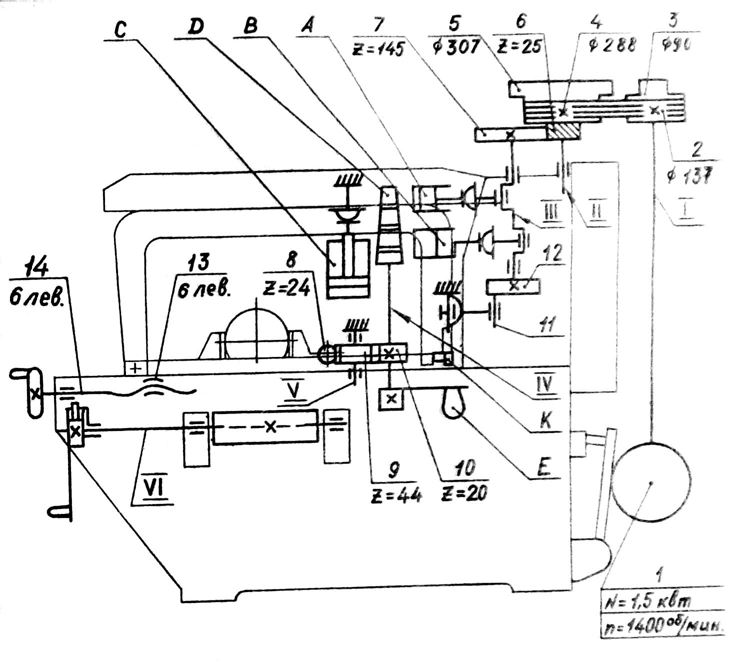 Кінематична схема механической ножовки 8Б72. Дивитись у збільшеному масштабі