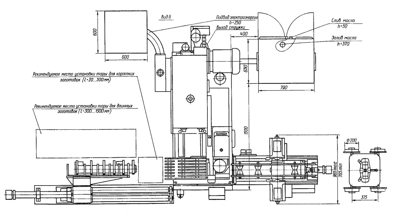 Механизированное пристрій позволяет одновременно укладывать на него от 5 до 18 заготовок в зависимости от их диаметра в диапазоне технической характеристики. Наибольшая длина укладываемого материала 6 м., наименьшая — 2,5 м. Применение механизированного пристроя (стеллажа-накопителя) і автоматичного стола для выгрузки заготовок длиной до 1500 мм, позволяет полностью автоматизировать цикл разрезки заготовок, повышает производительность автомата за счет сокращения вспомогательного часу на обслуговування верстата.