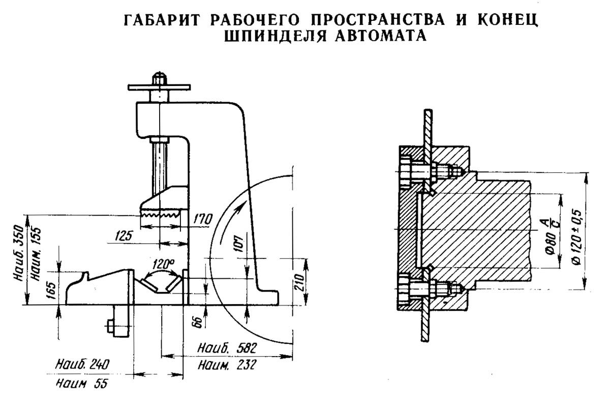 Габаритные розміри робочого простору верстата 8в66