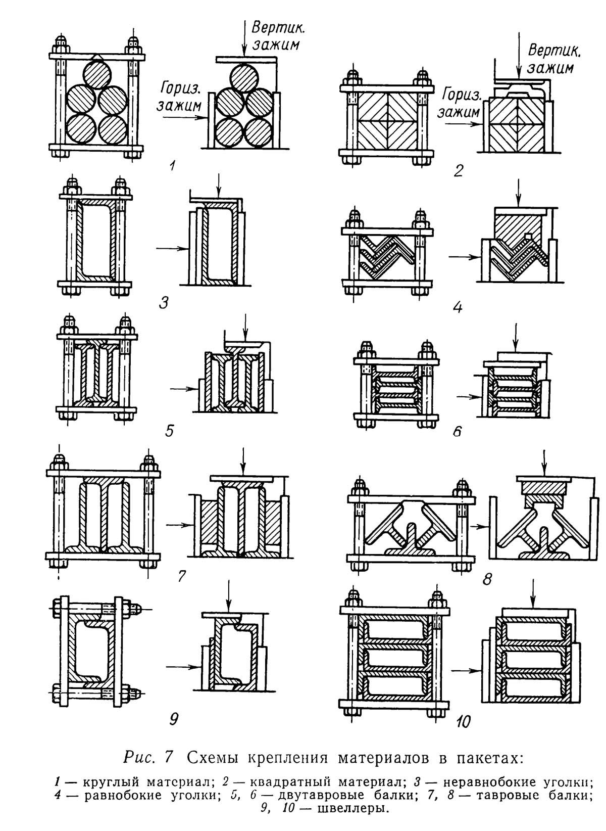 Заготовки небольших размеров при разрезании могут быть уложены пакетами, как показано на рис. 7. Величина пакета не должна превышать наибольшего размера заготовки соответствующего профиля.
