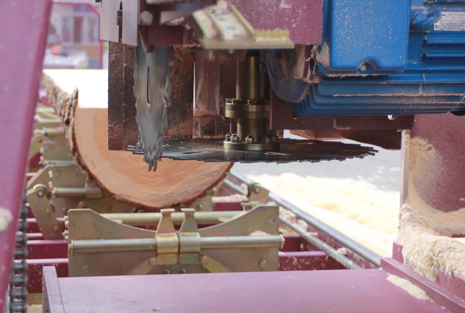 Рабочая зона круглопильного двухдискового горизонтального верстата Барс-5