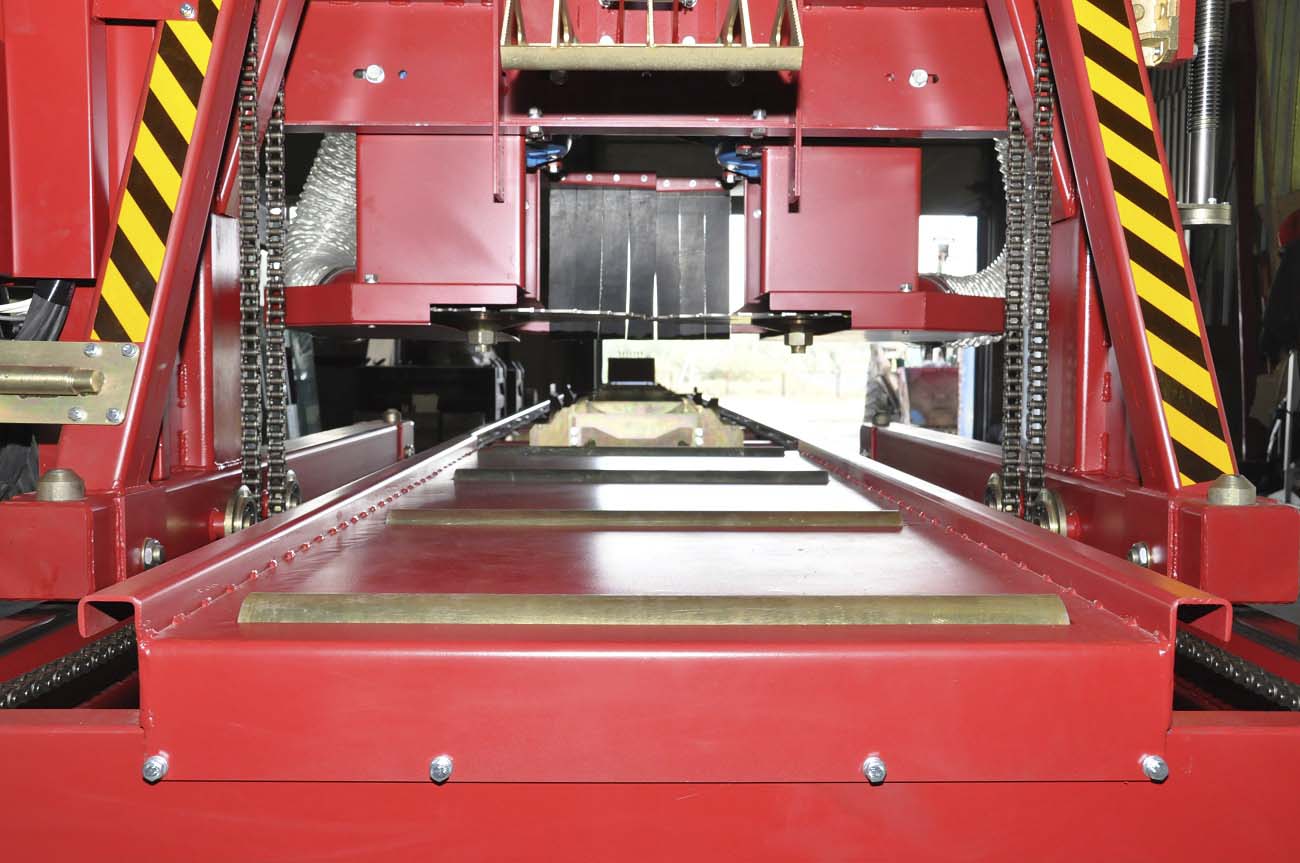 Главная особенность двухпильной горизонтальной пилорамы заключается в том, что режущий инструмент лежит в горизонтальной плоскости і смещен относительно друг друга вдоль оси пиления. Поетому за один проход пильной рамы вдоль рельсового пути Вы получаете готовый пиломатериал. Нет надобности возвращать раму в сходное положение, опустив пильный блок на новый размер пропила Вы производите распил в обратном направлении.