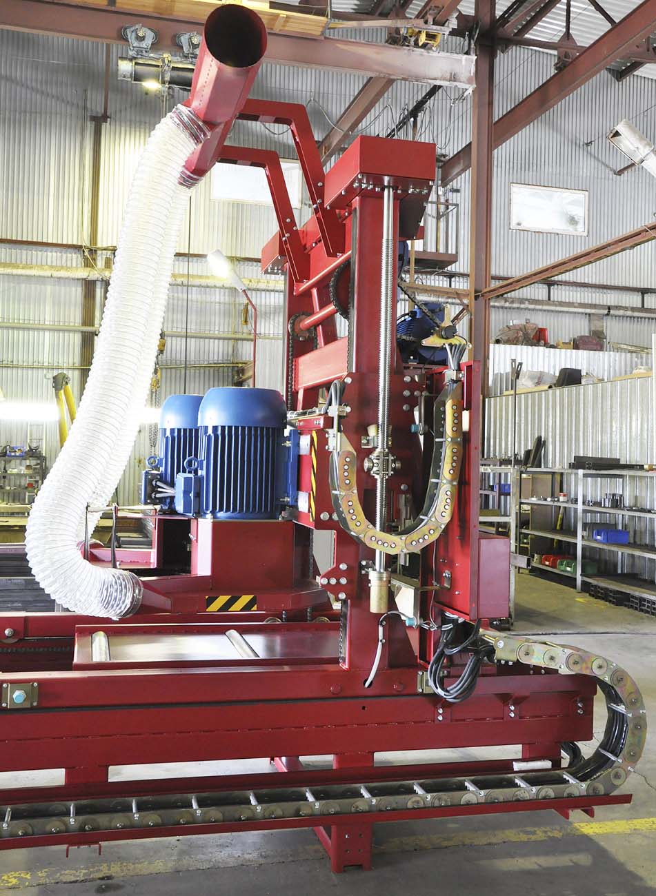 Вертикальных ход пильной каретки от електроприводу через цепную передачи, з ручным регулюванням.