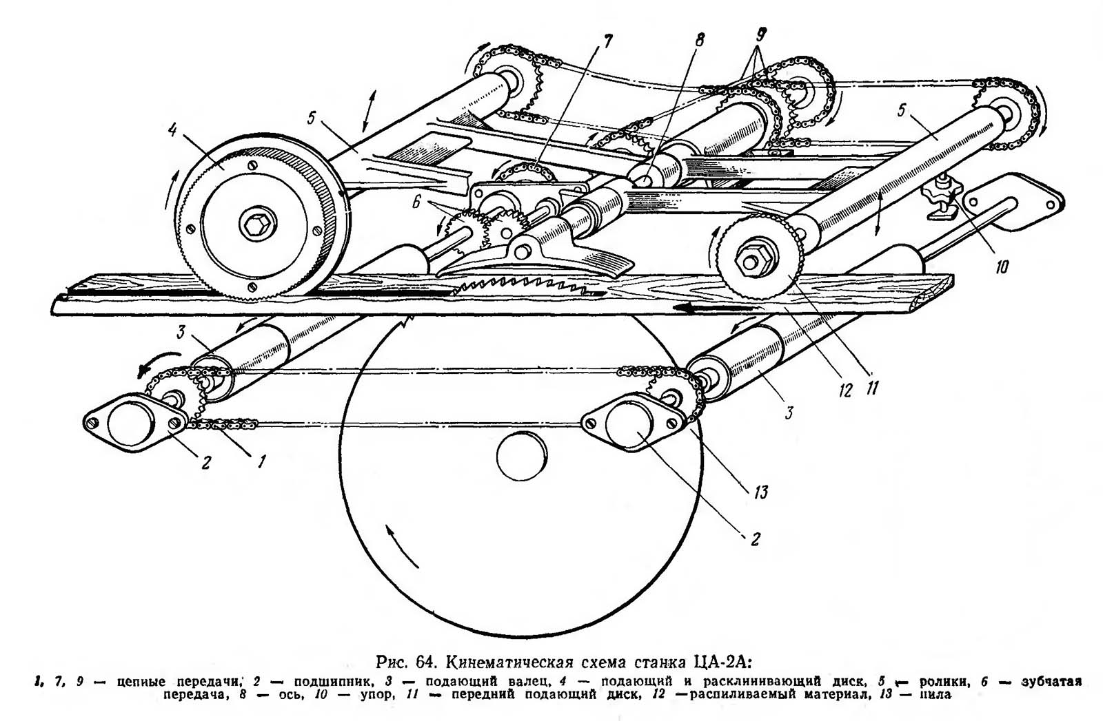 Схема рабочих органів круглопильного верстата ЦА-2А