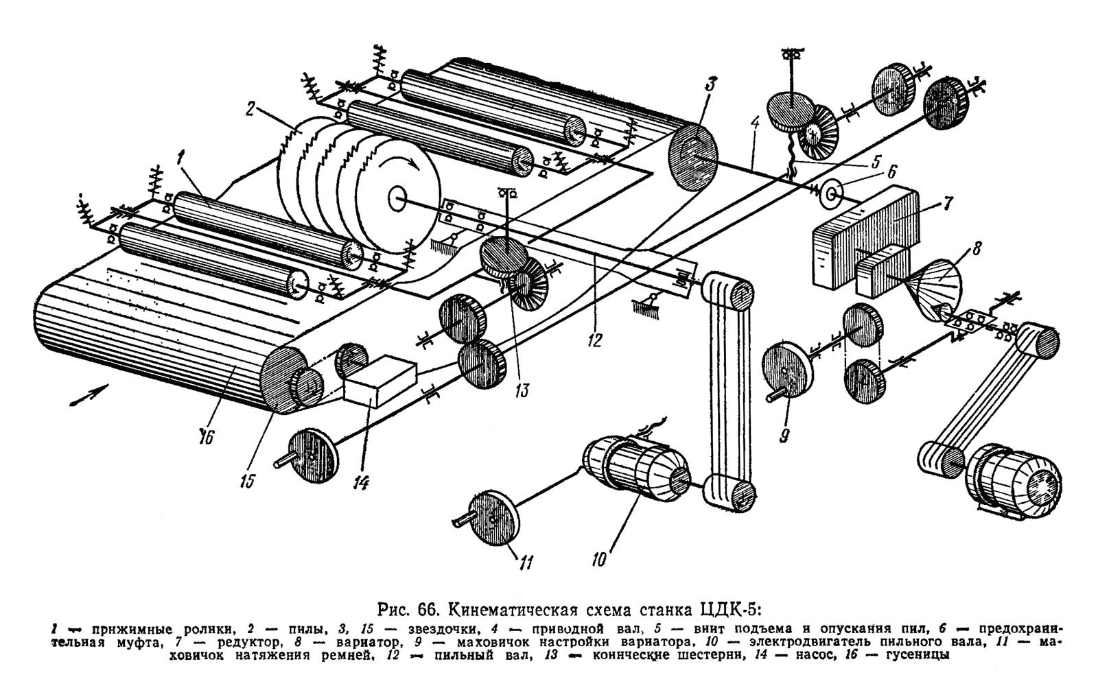 Схема многопильного прирезного верстата ЦДК-5. (Рис. 22 в)