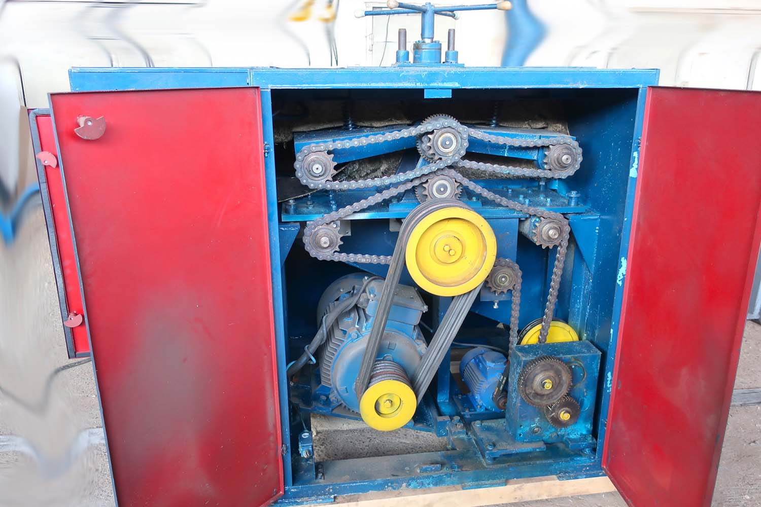 Механізм подачі приводится в действие з помощью мотор-редуктора, через систему отклоняющихся і передающих звездочек, соединенных единой ланцюгю. Это позволяет синхронизировать скорость обертання подающих вальцов і обеспечить равномерность подачі бруса.