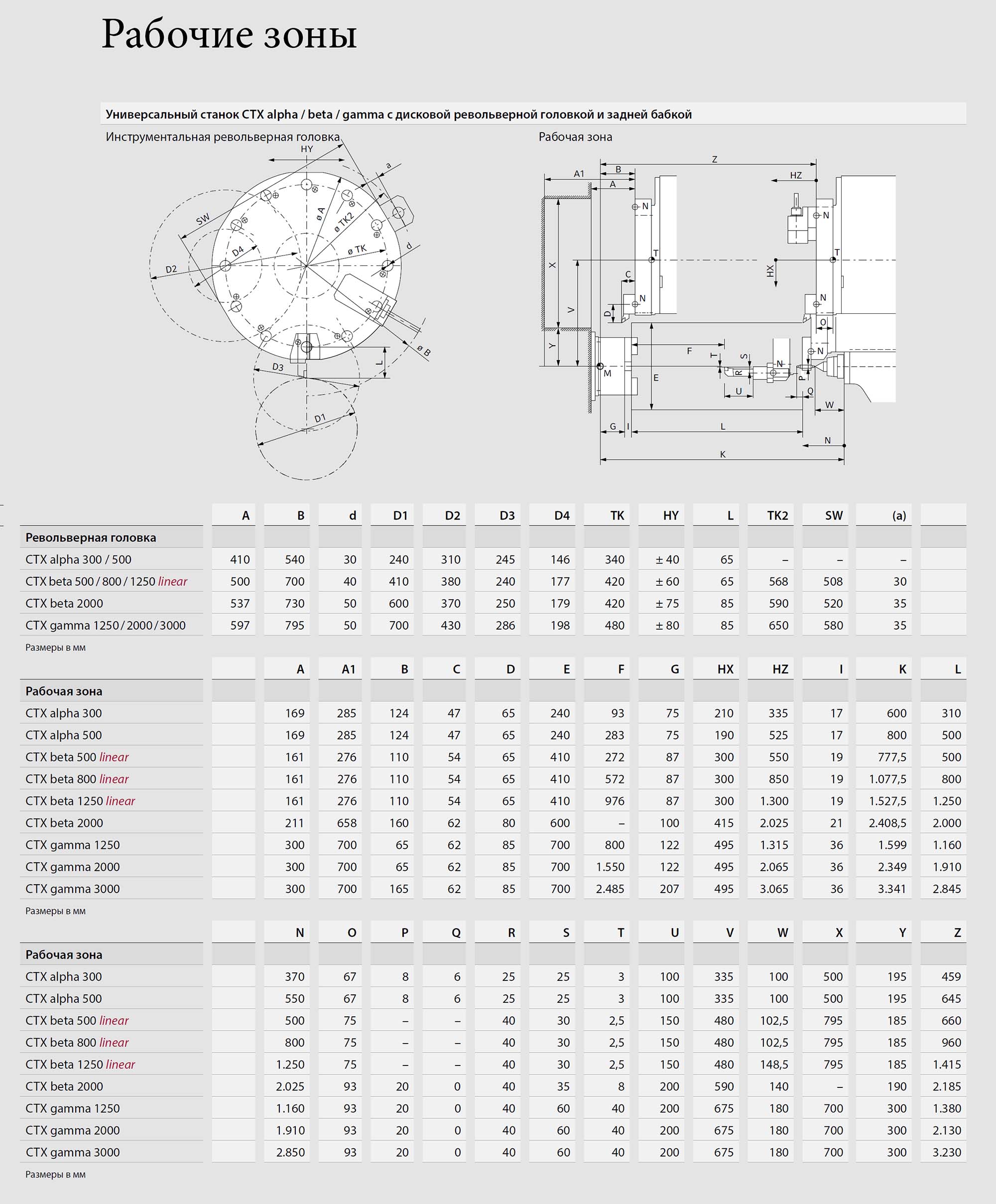 Розподіл верстатів сімейства CTX за розміром оброблюваних деталей. Дивуватися у збільшеному масштабі