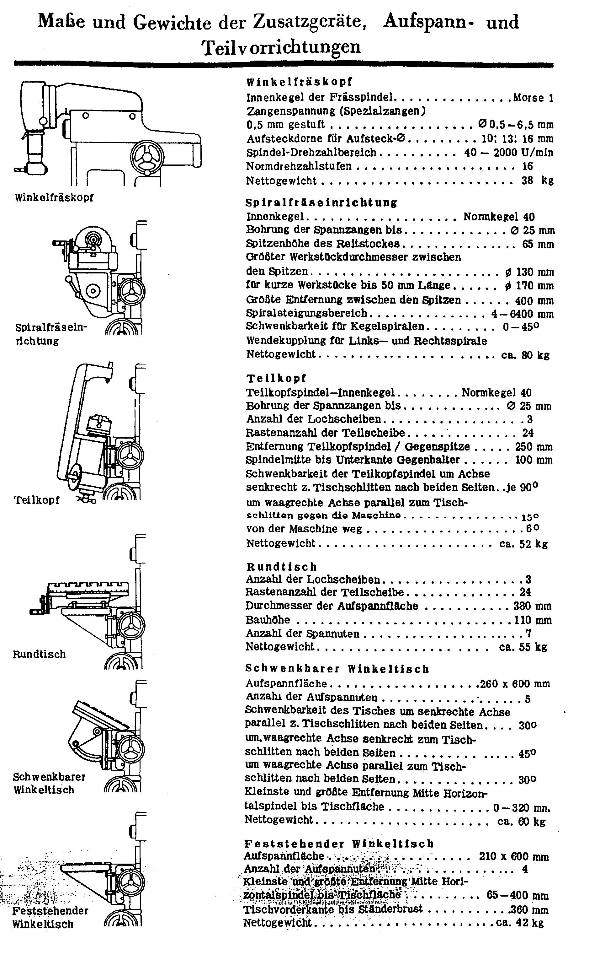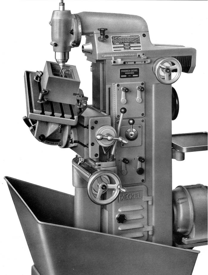 Благодаря оригинальной, адаптируемой і универсальной конструкції верстат Deckel подходил для решения множества проблем обробки, а секрет успеха етого типа заключался в его способности устанавливать различные головки - горизонтальные, стандартные вертикальные, высокоскоростные вертикальные і долбежные - в сочетании з различными столами - простыми, наклонно-поворотными і складовими поворотными.