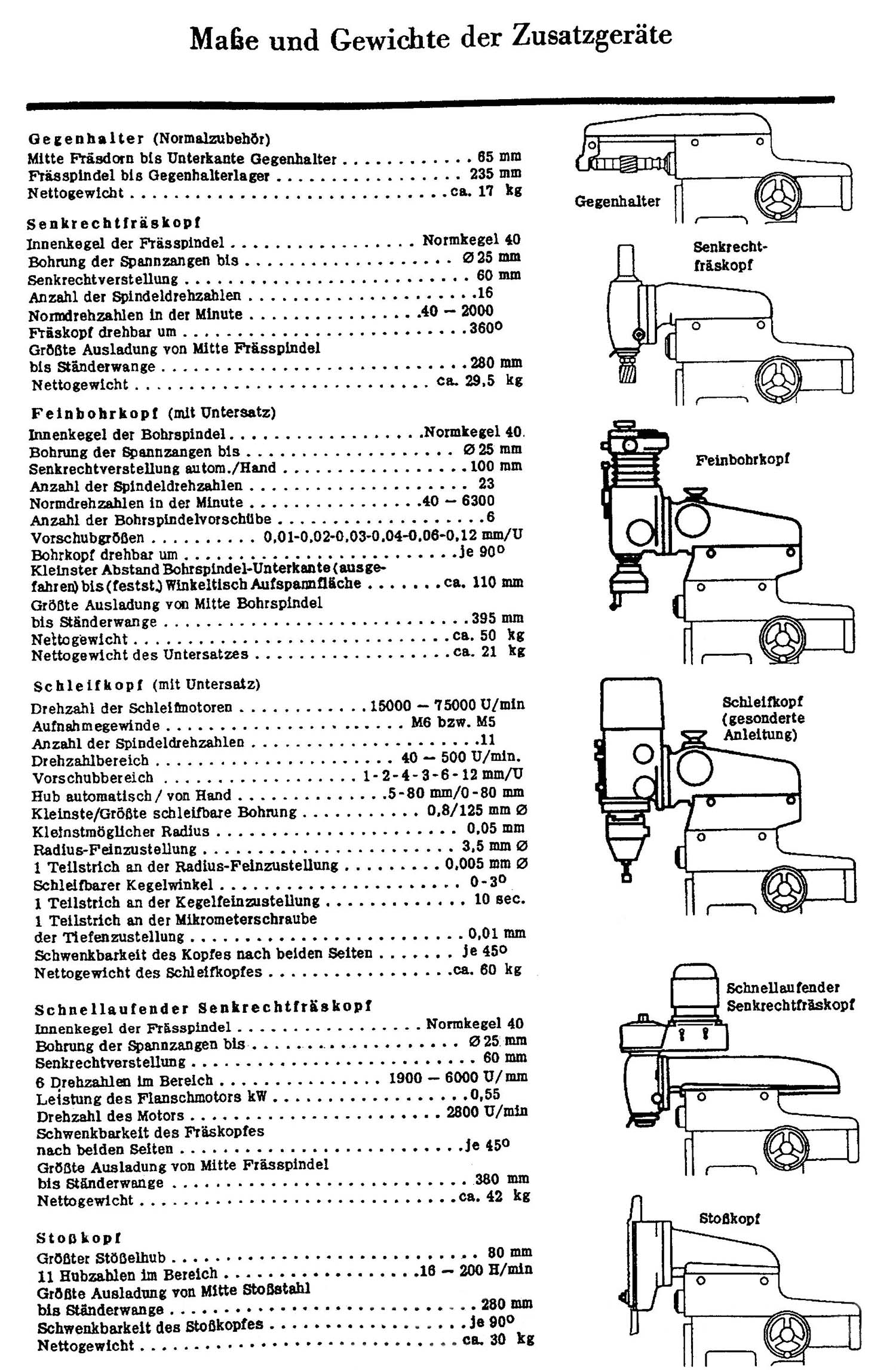 Все головки можно было перемещать назад і вперед по верхней частини основной колонны, чтобы обеспечить поперечную подачу, в то время как столы крепились болтами к плоскому вертикальному столу з Т-образными пазами, оснащенному мощной поздовжньої і вертикальной подачей. Жонглируя выбором головок і столов і используя другие аксессуары, опытный техник редко терпел поражение в своих попытках изготовить самые сложные фрезерованные і просверленные компоненты - і все ето з очень высоким уровнем точності.