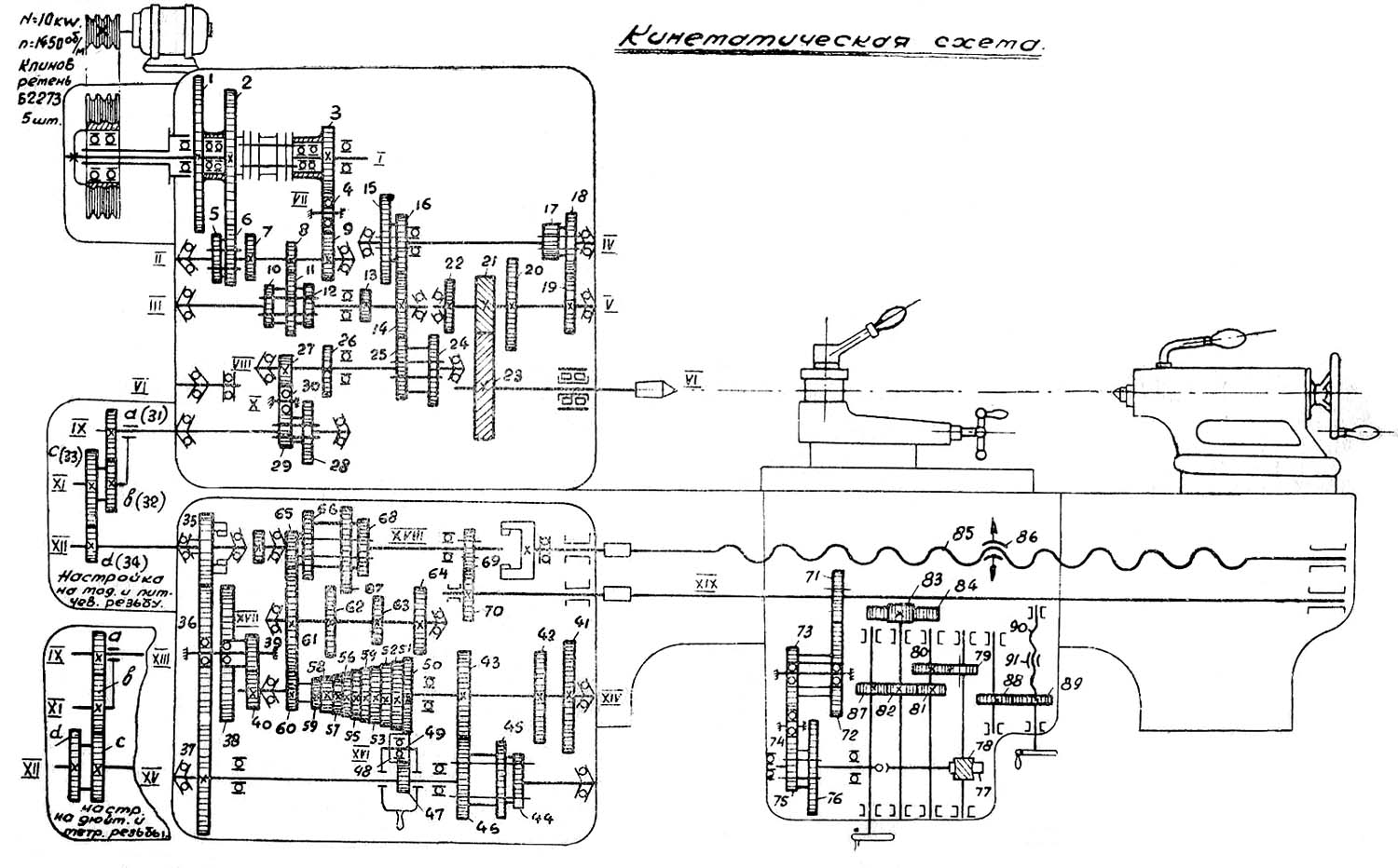 Кінематична схема токарно-гвинторізного верстата ДИП-300 (1д63а)