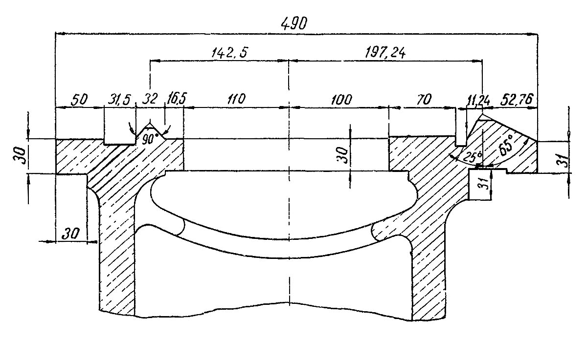 Регулювання заднего конического підшипника 3 вместе з упорным шарикоподшипником 4 производится з наружной стороны передньої бабки гайками 5. После регулювання підшибників следует проверить шпиндель на радиальный отжим. Для етого в коническое отверстие шпинделя вставляется оправка з коническим хвостом (конус 80 метрический) і дли ной цилиндрической частини 50 — 55 мм не менее 300 мм.