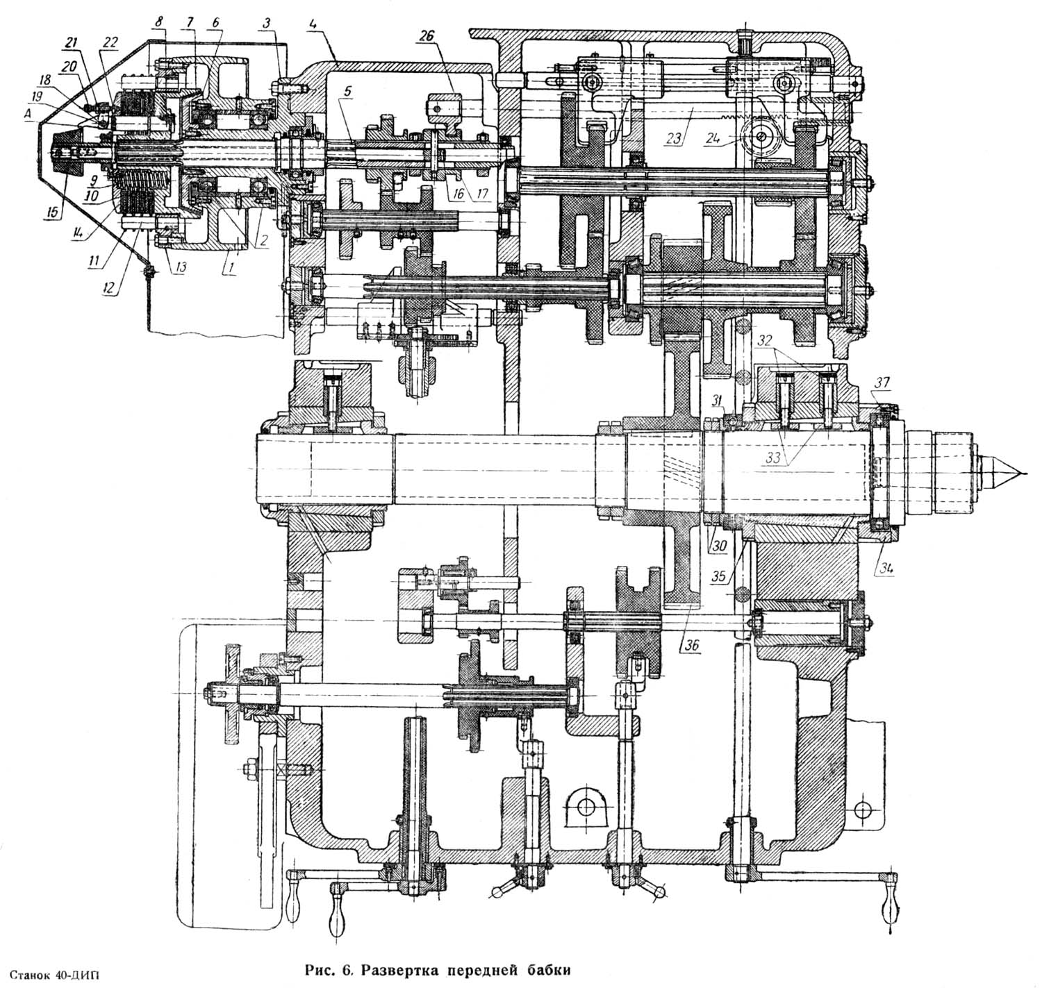 Коробка швидкостей токарного верстата ДИП-400. Поперечный разрез