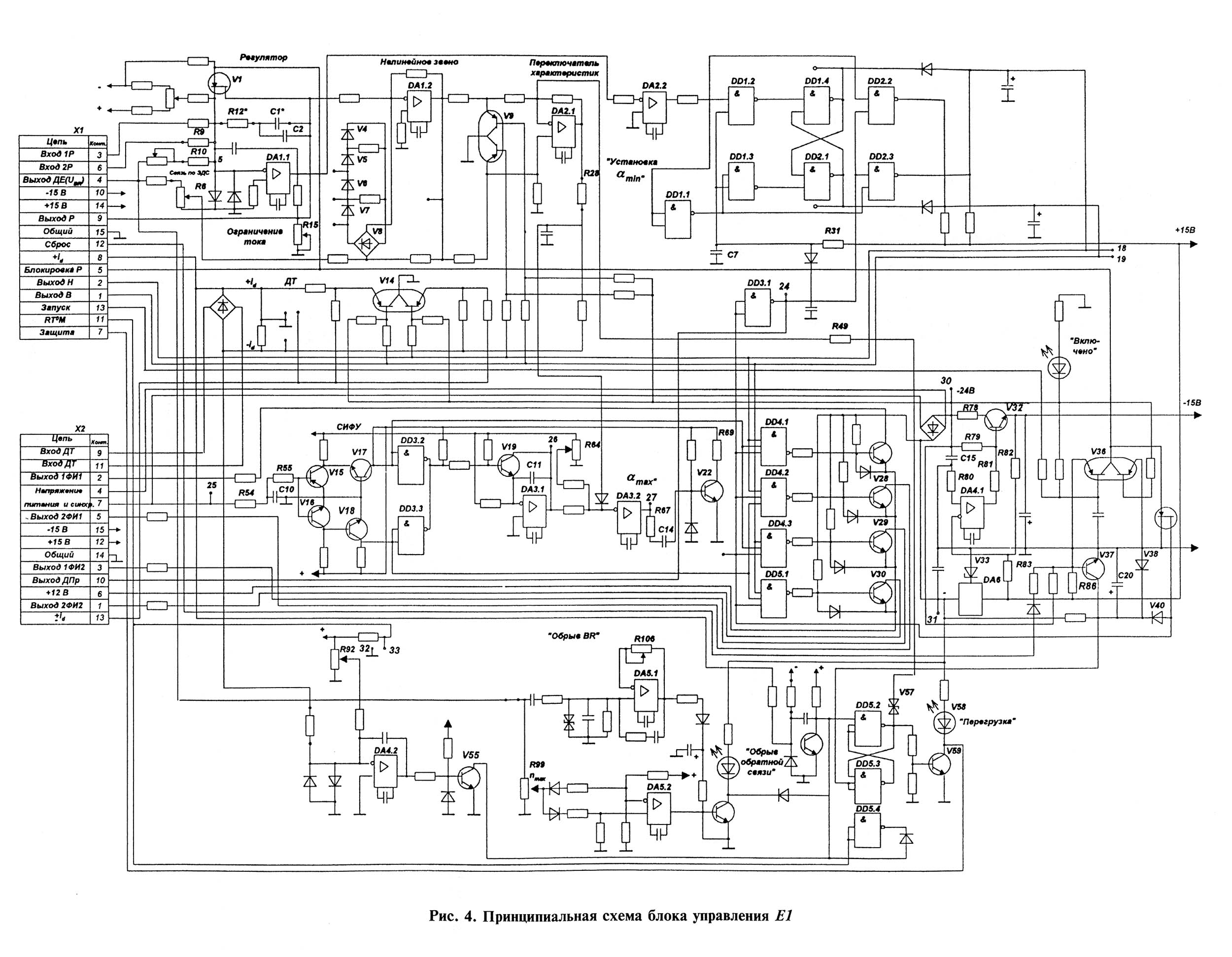 Принципиальная схема блока керування Е1. Дивитись у збільшеному масштабі