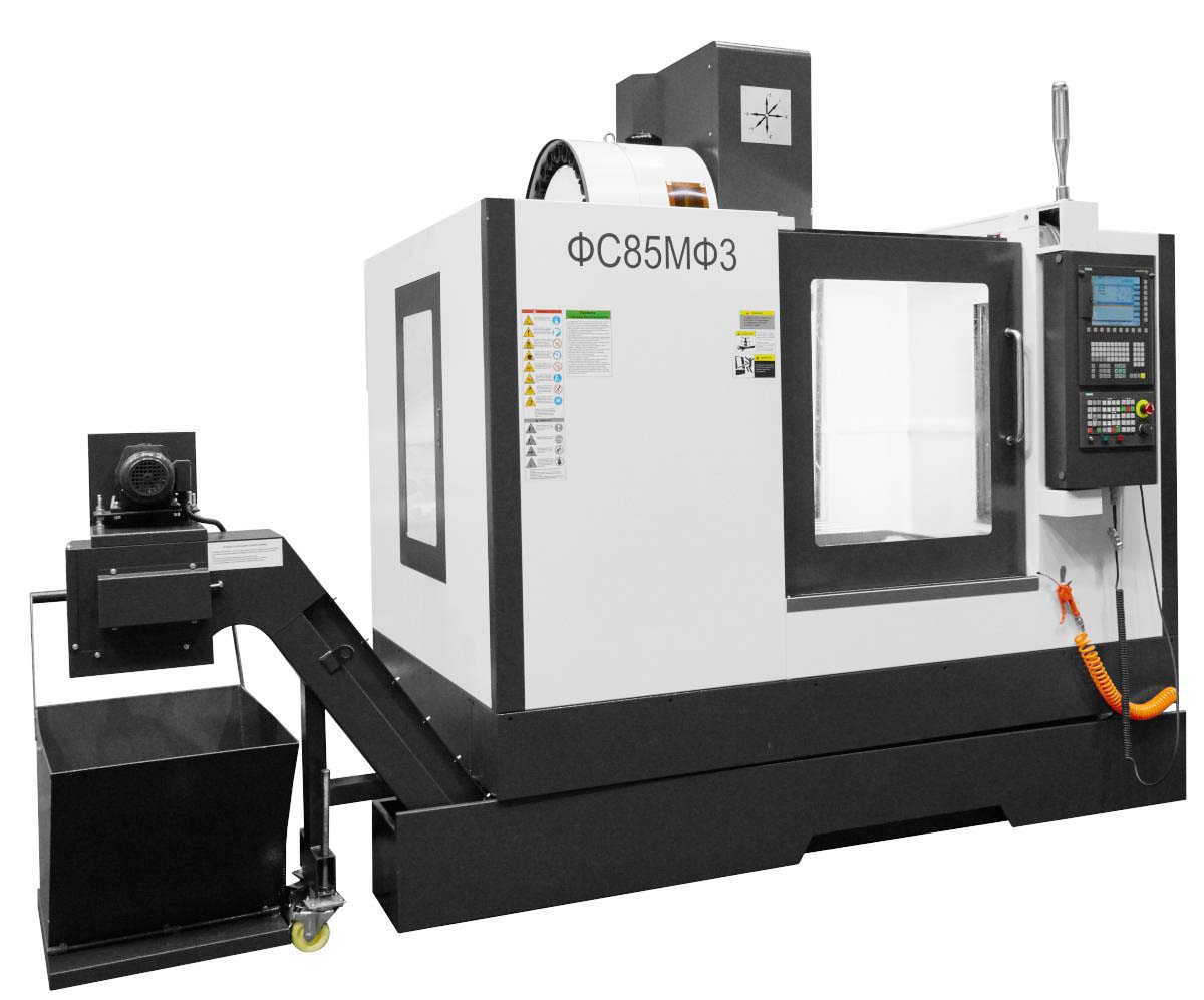 Центр фрезерный вертикальний з числовым программным керуванням (ЧПУ) і пристрійм автоматичною смены инструмента (АСИ) моделі ФС85МФ3 предназначен для многооперационной обробки разнообразных деталей сложной конфигурации, пресс-форм, штампов і пр. из стали, чугуна, цветных і легких сплавов. Данное обладнання позволяет комбинировать в одном рабочем цикле операции фрезерування, сверления, растачивания, а так же резьбонарізання.