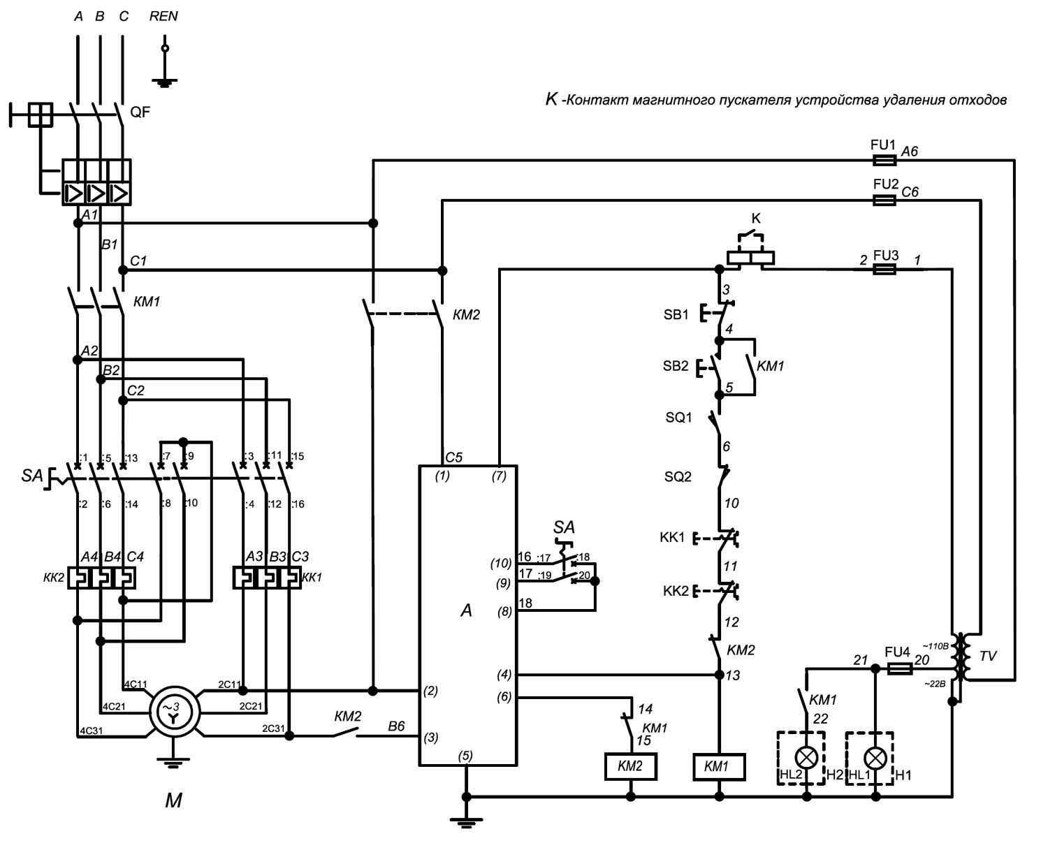 Нулевая защита осуществляется блок контактами магнитного пускателя КМ1 (4-5).