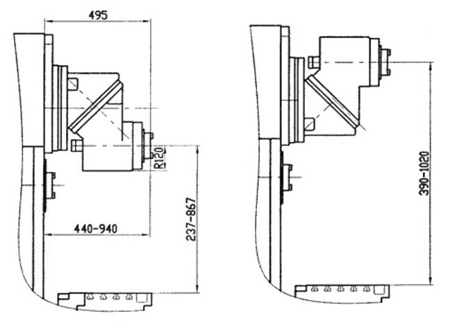 Расстояние от торца шпинделя поворотной головки до стола, мм 125..545 160..580
