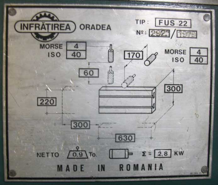 Фрезерный універсальний верстат моделі FUS-22 выпускался предприятием Ынфрециреа Орадеа Румыния.