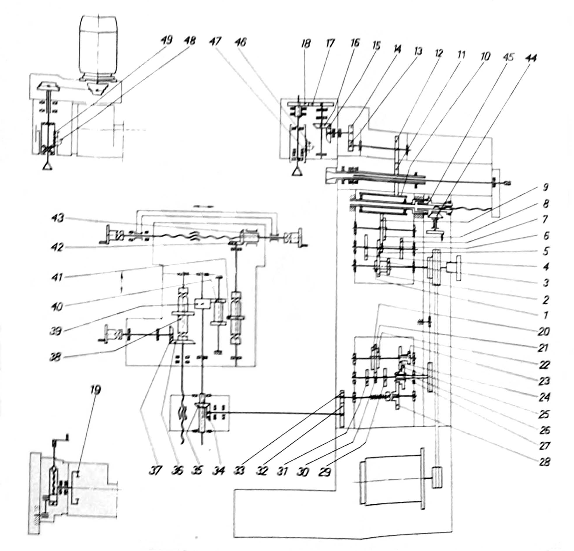 Кинематика машины обеспечивает выполнение широкого диапазона операций різання в оптимальных условиях. Маневрирование швидкостей і подач и, вообще, маневрирование всей машины является легким благодаря используемым механізмам і их размещению доступному для робочого.