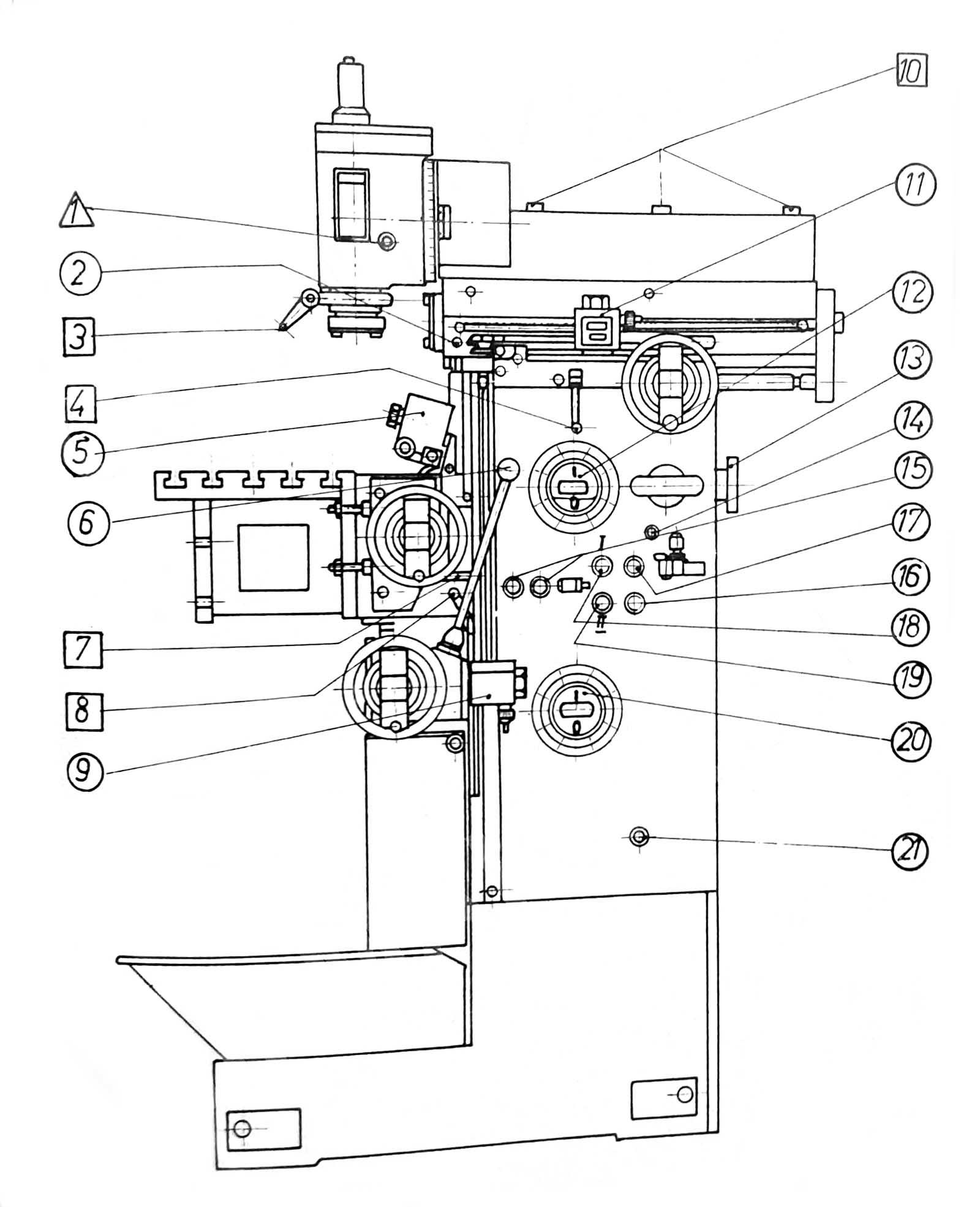 Розташування органів керування универсальным фрезерным верстатом FUS-22. Дивитись у збільшеному масштабі